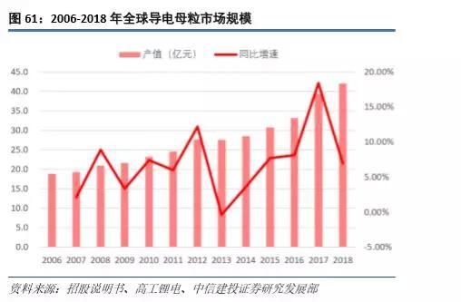 导电母粒主要受下游导电塑料市场需求带动,根据中国市场调查研究中心数据统计,2006年以来全球导电塑料产值稳定增长,2018年全球导电母粒市场产量突破3万吨,同比增长7.4%,产值同比增长6.9%,突破40亿元。由于近几年来导电塑料应用范围逐步多元化,导电母粒需求增速持续高于产能增速。