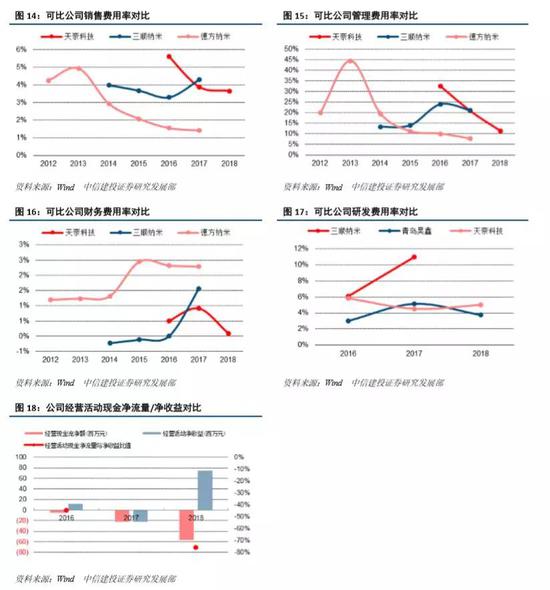 费用率:2018年公司销售费用率/管理费用率/财务费用率分别为3.6%/11.3%/0.1%。销售费用率及财务费用率与行业可比公司相当,管理费用率偏高,主因2016-17年进行员工股权激励。公司注重研发投入,2018年研发费用率高达5.01%,高于行业平均。