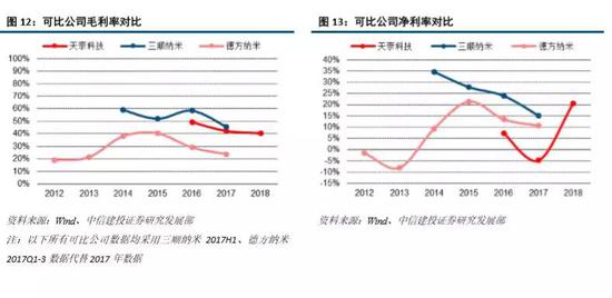 利润率:公司毛利率低于三顺纳米,主因其毛利率较高的碳纳米管粉体销售占比低。17年净利率为负主因主要客户沃特玛爆发债务危机,计提大量坏账准备和资产减值损失。2018年净利率提升至20.6%。