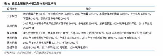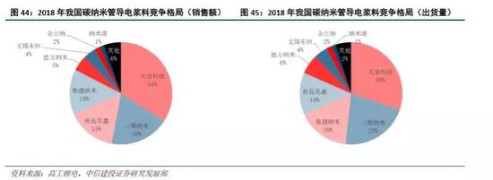 当前国内碳纳米管及其导电浆料的主要生产商包括公司、三顺纳米、青岛昊鑫、集越纳米、德方纳米、无锡东恒等,公司为行业龙头,2018年销售额和出货量占比分别达到34.1%、30.2%。碳纳米管行业集中度较高,从销售额和出货量统计的CR5分别达到87.6%、87.7%。