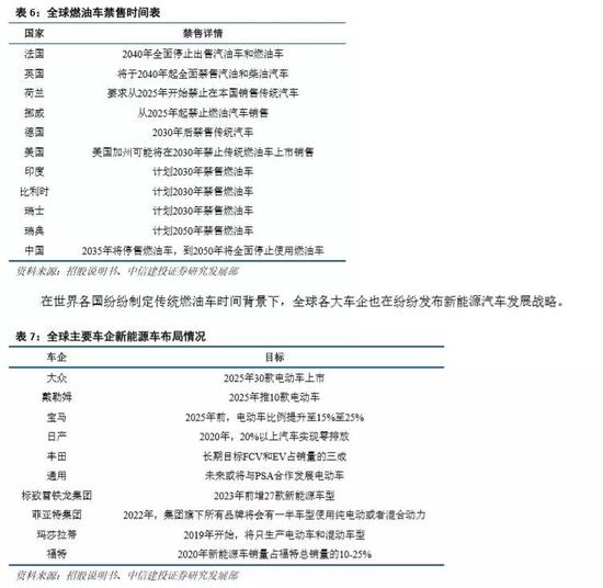 在世界各国大力发展新能源汽车产业的背景下,全球新能源汽车市场进入快速发展期,动力锂电池受全球新能源汽车市场快速发展带动。在新能源汽车产业规划方面,挪威、芬兰、德国、英国、法国分别宣布在2025年、2025年、2030年、2040年、2040年开始全面禁售燃油车。同时,我国也宣布2035年将停售燃油车,到2050年将全面停止使用燃油车。