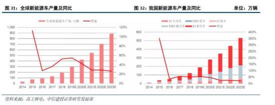 全球市场方面,随着世界各国积极制定传统燃油车时间表,全球各大车企也在纷纷发布新能源汽车发展战略,新能源汽车产业在全球迅速发展。在全球范围来看,去碳化、新能源汽车电动化将成为全面共识,全球动力锂电池市场规模也将在未来几年保持高速增长的趋势。预计到2023年,全球新能源汽车产量将达887.5万辆,未来五年复合年均增长率达35.8%。