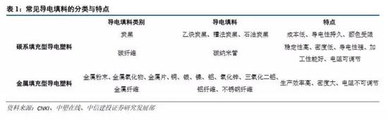 按照填充型导电塑料中填充物种类不同,可以将填充型导电塑料分为以下几类: