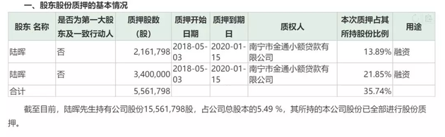 八菱科技曾在2018年5月披露,陆晖将其持股全部进行质押。
