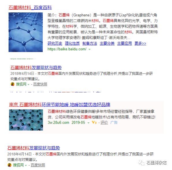 百度搜索石墨烯材料的情况显示,石墨烯材料被频频使用。