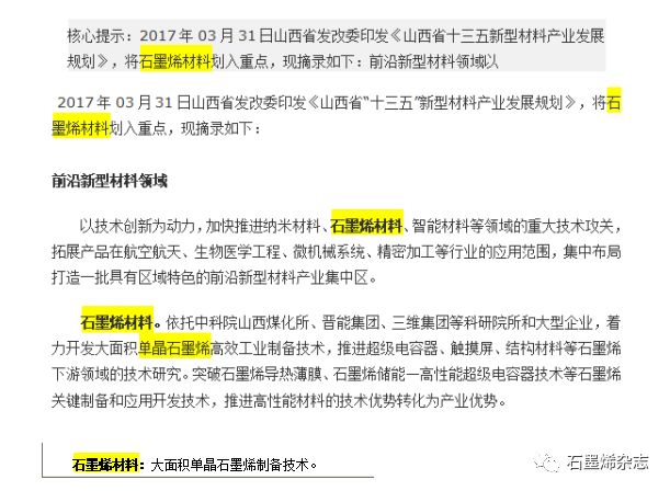 《山西省“十三五”新型材料产业发展规划》文本部分截图。