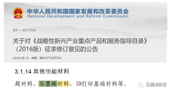 那如何解决这个问题呢?添加一个为石墨烯行业从业者广泛接受的约定俗称的术语:石墨烯材料。石墨烯材料=石墨烯+石墨烯衍生物。看看各级政府发布关于石墨烯材料的文件。