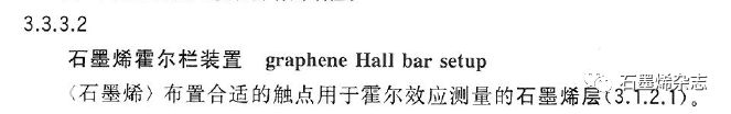 (3.3.3.2)这里的术语是“石墨烯霍尔栏装置”,它的解释:(石墨烯)布置合适的触点用于霍尔效应测量的石墨烯层。也就是,***霍尔栏装置是*******的石墨烯层?装置=石墨烯层,你没看错,但这不是最大的问题。石墨烯霍尔栏装置,在本标准的语境表述下,(看3.1.2.1)(单层)石墨烯霍尔栏装置只能演示单层石墨烯霍尔效应。双层石墨烯、三层石墨烯、少层石墨烯等霍尔效应演示表述没包含在内。