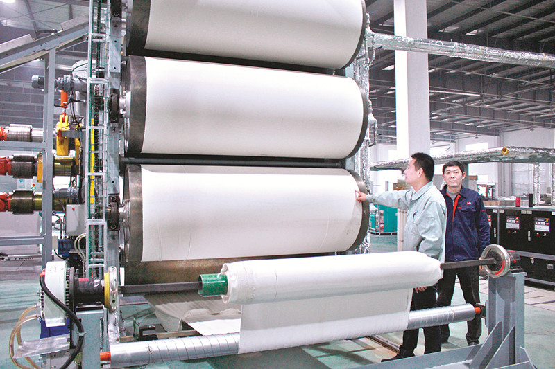 边建设、边投资、边研发、边生产、边销售,这是康普印刷项目的一大特色。公司董事长徐毛清说,到目前为止,康普已完成辅助用房建设,建成厂房2.5万多平方米,投资5000多万元购置100多台套高端设备和检测仪器,新上两条智能化生产线,生产线上价值600多万元的三辊压延机,加工布的宽度达到2.1米,比同行普遍使用的压延机多了0.6米,且大大提高了橡皮布的质量。