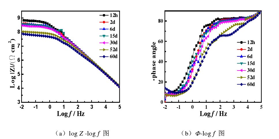 涂有导电防腐涂层的碳钢Q235在3.5 wt.%NaCl溶液的EIS图