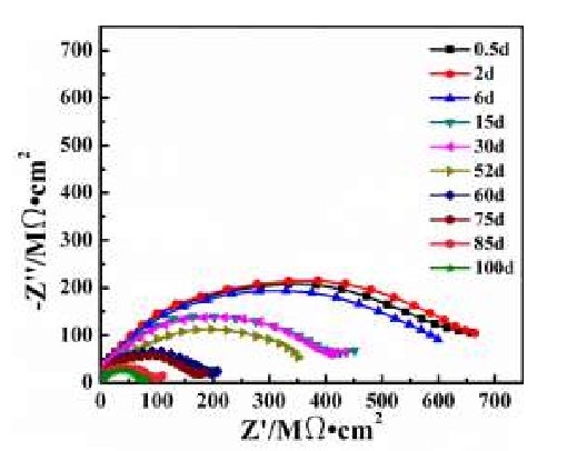 无溶剂型石墨烯基导电涂料/碳钢Q235在3.5 wt.%NaCl溶液中的Nyquist图