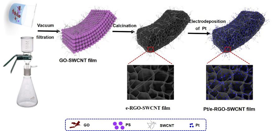 ▲Scheme 1. Schematic illustration for the Pt/e-RGO-SWCNT film