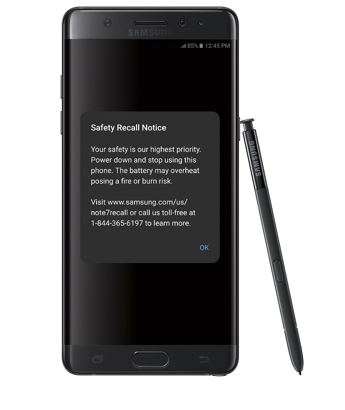 Note 7 召回通告(图自:Samsung,via Cnet)