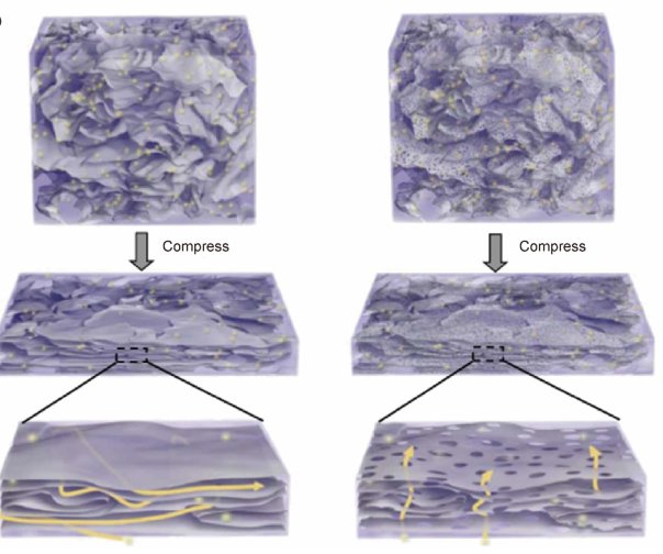 离子输运问题:离子输运问题是石墨烯密实化后必然要解决的问题。据研究报道,解决此问题的思路之一是制备定向排列的石墨烯结构,构建离子输运的“高速公路”。