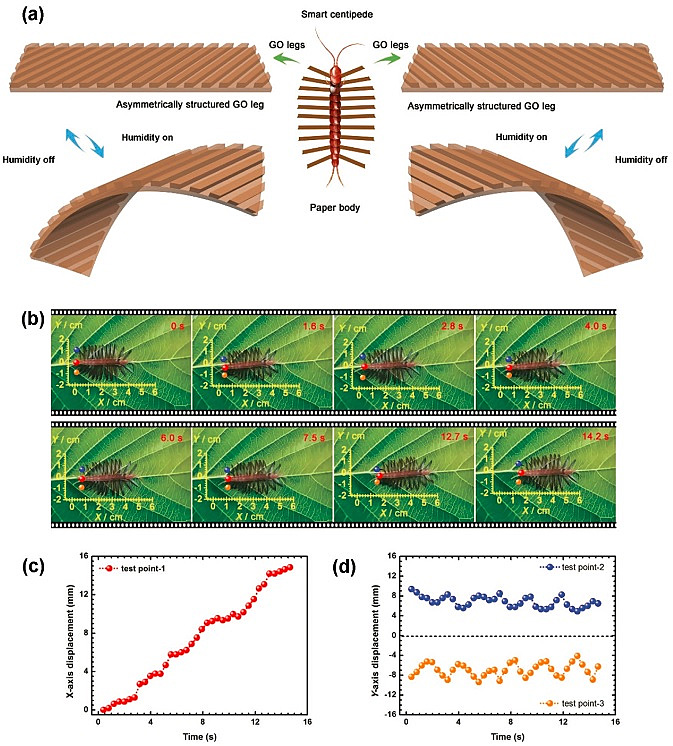 图1. 湿度刺激爬行的氧化石墨烯蜈蚣