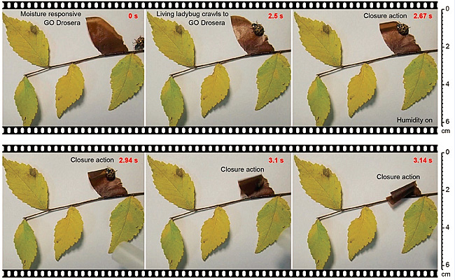 图2. 湿度刺激捕捉瓢虫的氧化石墨烯树叶