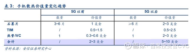 结合安信证券观点,5G时期手机导热材料整体翻倍以上增长。以石墨片为例,由于手机整体功耗增加,石墨要用的更多更厚,从而价值量有所提升。