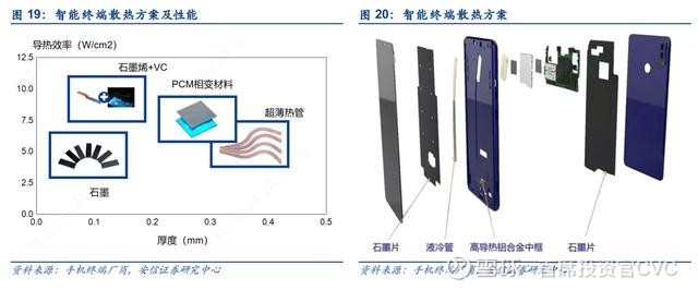 4G时期,手机散热还主要以石墨片为主。而到了5G时期,单纯靠石墨片已经不能够满足手机散热的需求,各大手机品牌厂家纷纷引入热管和均热板(VC)。在性能上,热管和均热板对于石墨会有很好的补充作用。