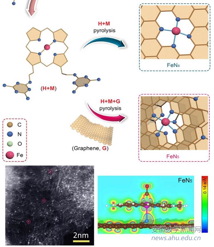 利用可再生能源,把二氧化碳转化为有附加值的产物,一直是人类面临的重要课题。王俊中教授课题组从原子层次出发设计新型催化剂,通过对氯化血红素和三聚氰胺分子在石墨烯表面的自组装、键合和碳化处理,获得了石墨烯铆钉单原子铁FeN5的新型催化活性中心,催化性能优于所有Fe-N-C型催化剂,在低过电位下,法拉第效率达到97.0%。DFT理论模拟表明,FeN5活性位具有吡咯型N轴向配位FeN4的结构,能有效抵消Fe 3d轨道的电子密度和降低Fe-CO的π反馈效应,有利于产物CO的快速解吸和高选择性的产生。该工作提供了一种石墨烯单原子新材料能升级的制备方法,为二氧化碳的资源化利用也提供了一个科学依据。(记者 聂静洁)