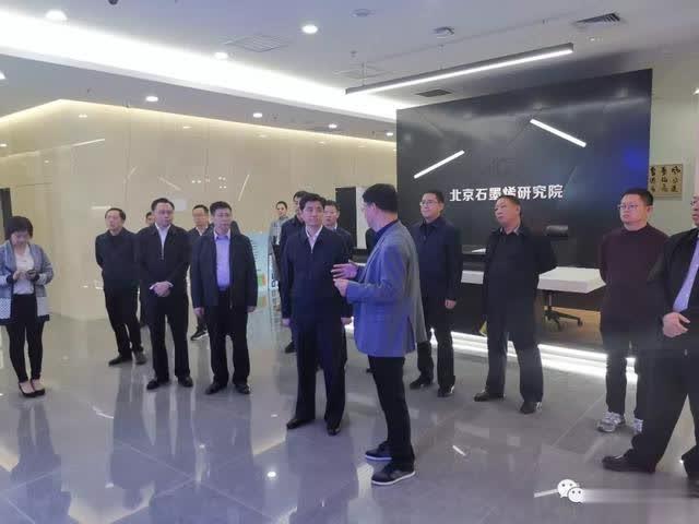 北京市政协副主席、中科院院士、北京石墨烯研究院院长刘忠范热情接待余红胜市长一行,陪同参观了该院展厅、国家级石墨烯质量检测平台、众创空间、研究部及相关实验室,详细介绍了研究院的建设进展、发展定位、运行机制、研发成果以及未来规划。