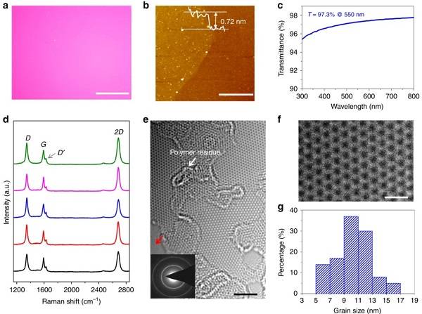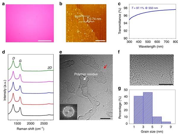 (a) 3.6 nm晶粒尺寸的纳米晶石墨烯薄膜的光学照片;