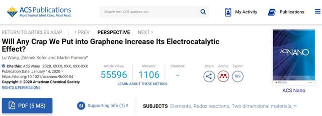 Yury 说道:“作为 ACS Nano 的副主编,我负责监督出版论文的内容。而 Pumera 和王璐的这项研究以非同行评审的观点文章的形式发表,这让 Pumera 试图引起人们注意的动作起到了效果。在发表后的两天内,该文章就成了杂志今年阅读量最高的论文。”