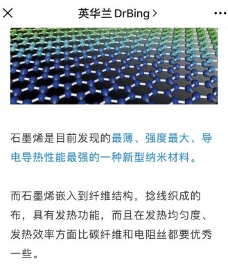 至于说宣称石墨烯衣服穿上自己就发热之类的产品,基本就可以当个科幻故事来听吧,毕竟这已经超脱能量守恒定律的法则约束了。如果石墨烯有本事能自己发热,那做什么衣服,直接做永动机去了。