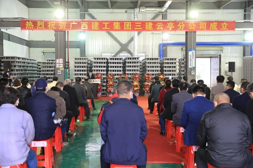 广西建工集团三建公司董事长欧志永、广西云亭烯技术有限公司董事长侯树亭分别致辞,表示云亭分公司的成立,是广西建工三建和广西云亭烯公司深化合作的成果,是顺应时代发展的需要,相信在双方的共同努力下,一定能在装配式+ EPC领域闯出一片新天地,打造出具有广西影响力的装配式建筑项目,实现合作互惠共赢。