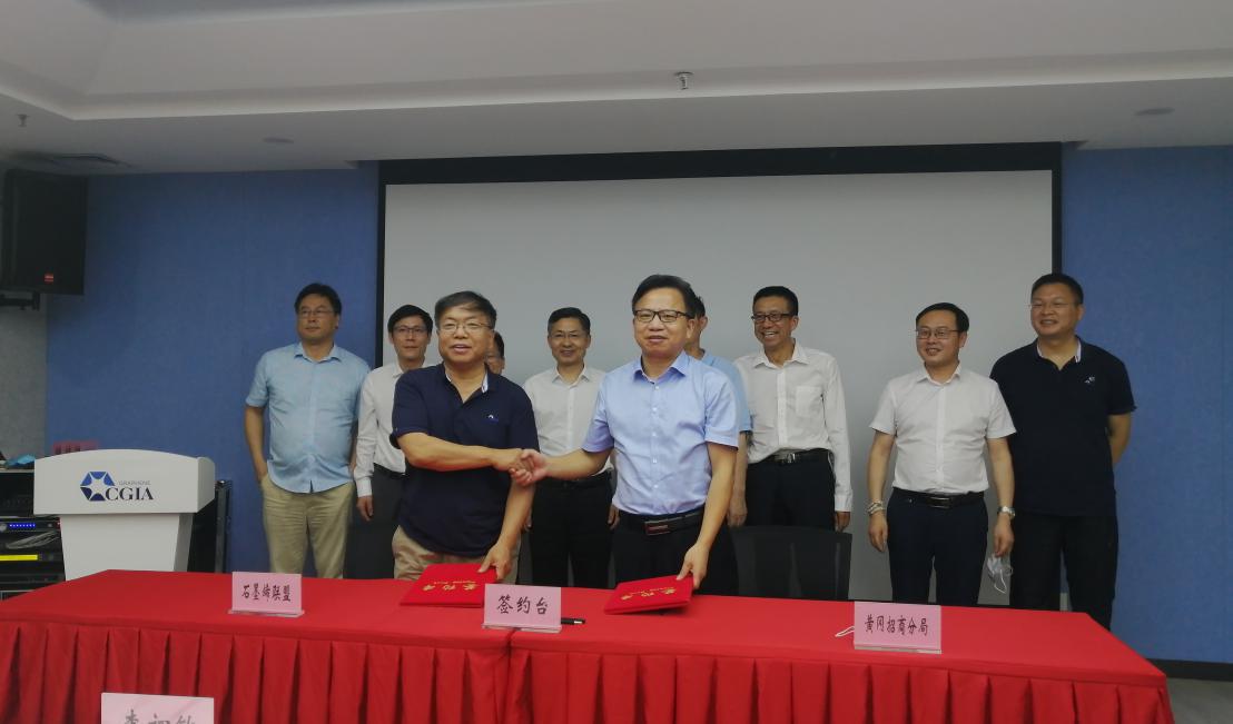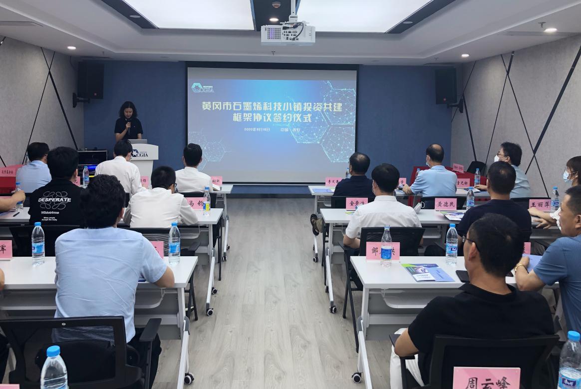 图为黄冈现代服务产业招商分局与石墨烯联盟签订投资意向协议