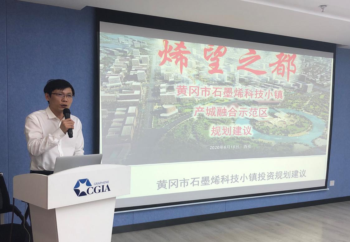 图为柏嘉交通科技集团董事长葛胜锦介绍黄冈市石墨烯科技小镇规划建议