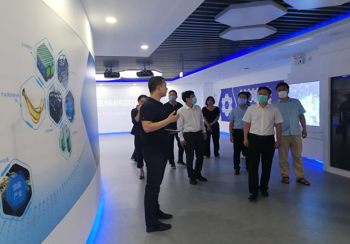 图为与会嘉宾参观西安丝路石墨烯创新中心展厅、石墨烯精品展示馆及入驻企业