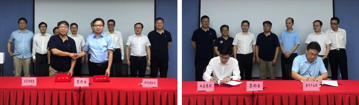 图为黄冈市招商局与石墨烯联盟签订投资意向协议 图为黄冈高新区管委会与我司签订战略合作协议