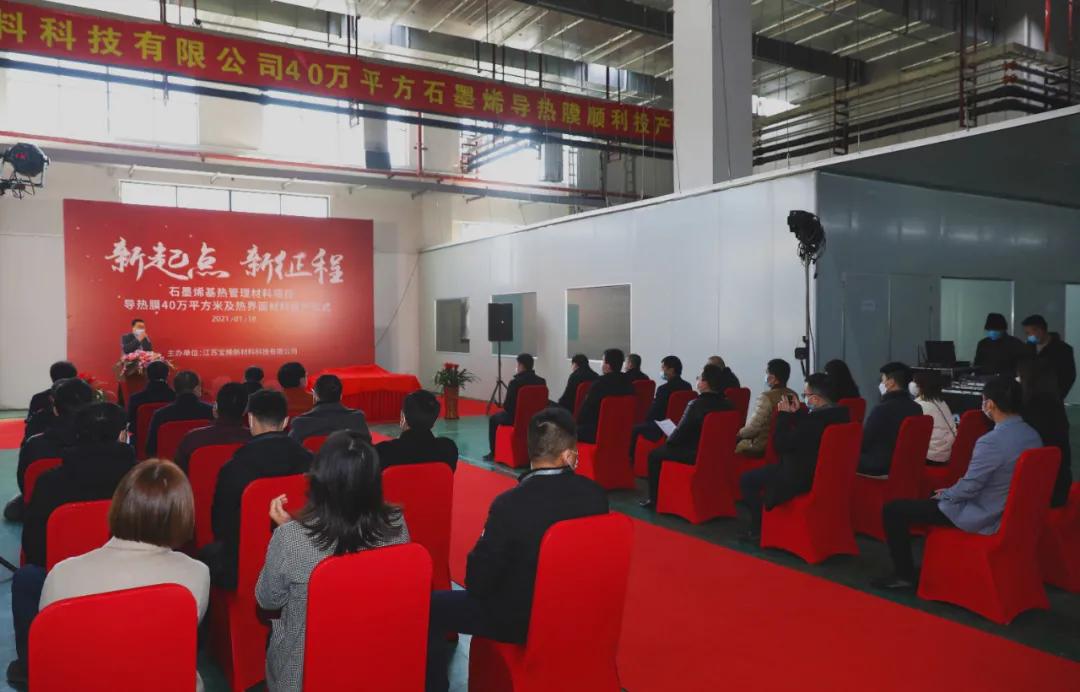 1月18日,以“新起点,新征程”为主题,江苏宝烯新材料科技有限公司(以下简称“江苏宝烯”)“石墨烯导热膜年产40万平方高导热石墨烯膜生产线”投产仪式在江苏无锡盛大举行。四川省石墨烯产业技术研究院执行院长李星、江苏宝烯执行董事金永兴等嘉宾出席,与合作伙伴、行业专家及媒体记者共同见证了此次投产庆典仪式。