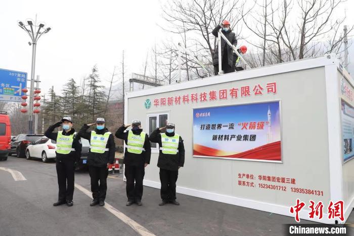 中新网阳泉1月24日电 (范丽芳 冯倩)“我们在这里坚守快20天了,天寒地冻,条件有限,大家只能每执勤2小时进警务车里休息暖和一会儿。”山西省阳泉市矿区公安分局治安大队大队长史利文从1月6日开始,在阳泉西高速路口负责防疫执勤,“今天送来的气凝胶零能耗小屋,帮我们解决了很大问题”。