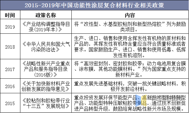 2019年发改委发布《产业结构调整指导目录(2019年本)》,将“改性型、水基型胶粘剂和新型热熔胶”列为鼓励类项目。