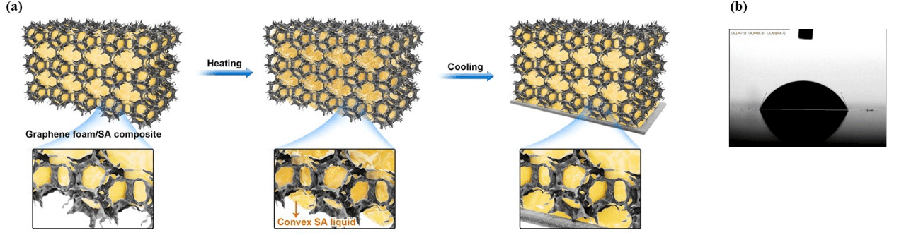 石墨烯具有高导热和轻质特性,基于石墨烯的传热材料,如石墨烯薄膜、三维石墨烯泡沫等,引起了研究者们越来越多的研究兴趣。研究人员将相变材料(PCM)填充到三维石墨烯泡沫中,利用三维石墨烯泡沫的优异三维传热能力,获得具有较好导热性和高储热能力的复合材料。但是,这种复合材料仅利用了三维石墨烯泡沫骨架的传热性能,传热模式单一,无法最大化石墨烯的导热性能优势。如何实现多尺度石墨烯结构的有效结合,充分发挥石墨烯优异的导热性能,对进一步提升石墨烯复合材料的综合应用水平具有重要意义。