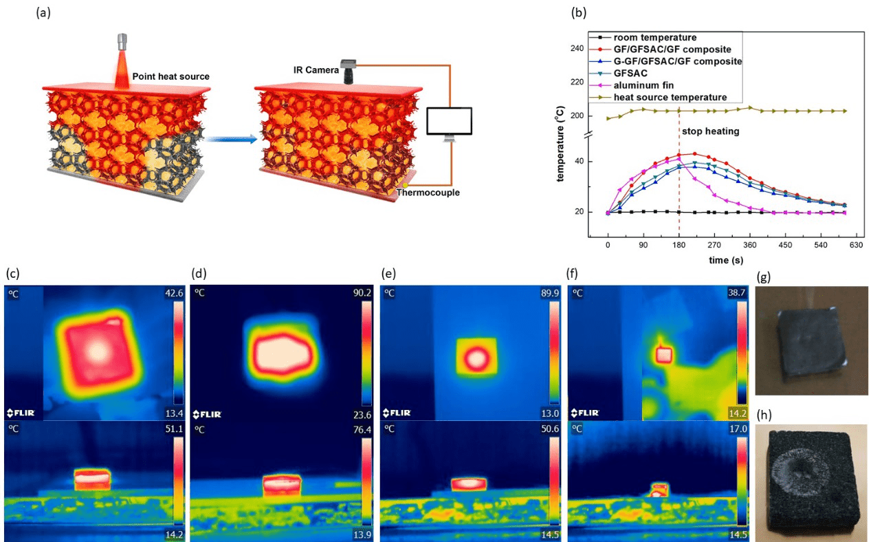 图4. GP/GFSAC/GP复合材料热管理性能展示