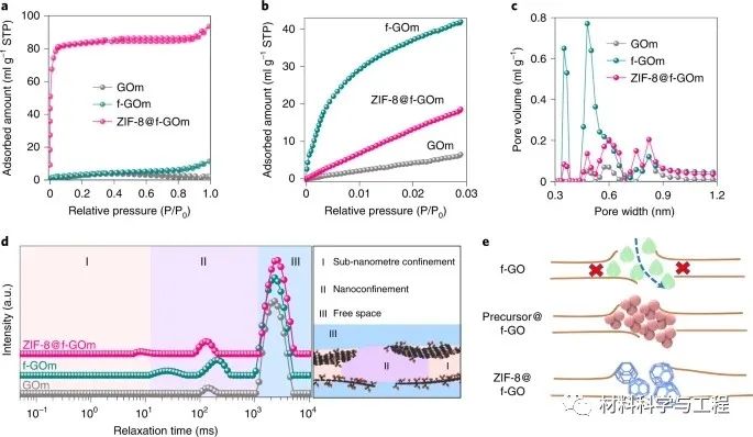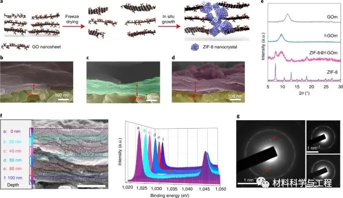 图2 氧化石墨烯基膜的孔结构及ZIF-8生长机制的阐明。