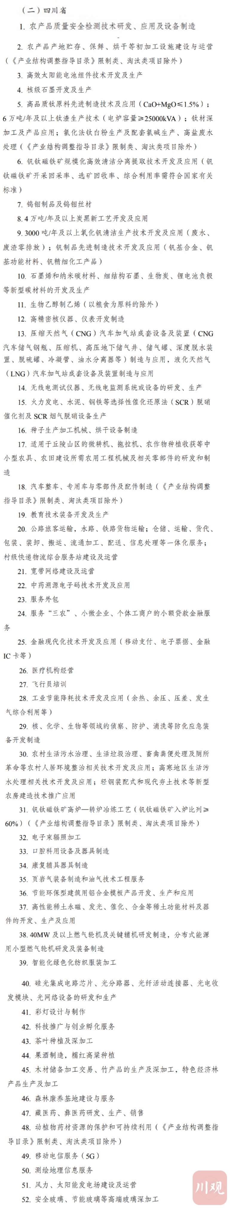 今日(3月1日)起,经国务院同意,国家发展改革委发布《西部地区鼓励类产业目录(2020年本)》(以下简称《目录》)正式施行。其中,四川共有52条产业条目列入西部地区新增鼓励类产业目录,较2014年本增加了16条。