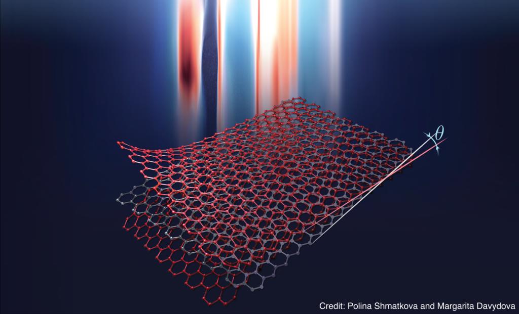 “魔角扭转双层石墨烯”的奇妙之处在于当把一层石墨烯材料放在另一层之上,同时旋转到一个特定的角度——所谓的“魔角”时,两层石墨烯之间的电子会突然大幅减慢运动速度,这时候电子会变得对电子-电子间相互作用更加敏感,常常会产生新奇的行为。这种原本在理论上预测的性质在2018年麻省理工学院团队的实验中被证实,很多新现象也同时被发现。这些现象之一就包括超导,电子这时候会两两配对,电流流动不受到任何电阻。但是直到今天,这一超导的来源,这种超导是否属于传统超导体等问题依然备受争论。
