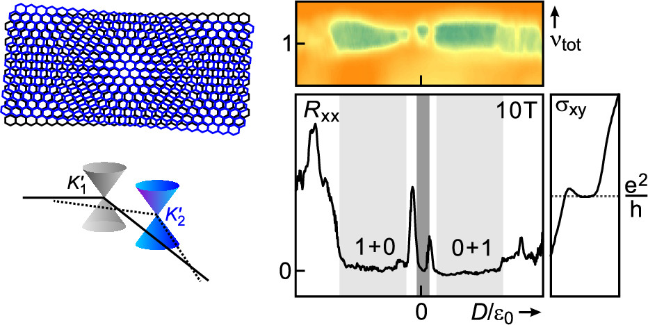 二维近距离电子系统的研究在III-V半导体领域是一个非常有意义的课题。玻色-爱因斯坦凝聚态的观察是最突出的成果之一。这些耦合电子系统中丰富的物理特性源于它们提供的额外自由度。隧穿使得载流子在层间发生跃迁,层间库仑相互作用与层内相互作用相互竞争。这两种方法都可以通过改变隧道阻挡层和层间分离的特性来实现。对于小的层间距,层间隧穿混合每层的水平,形成对称和反对称状态。有鉴于此,马克斯·普朗克研究所Jurgen H. Smet等人报告了旋转2°的两个堆叠石墨烯层中的量子霍尔效应。