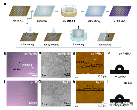图3. LB辅助方法使用喷涂技术转移的大规模石墨烯薄膜。