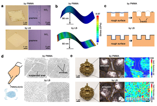 图4. LB 辅助石墨烯转移到粗糙表面的图示。