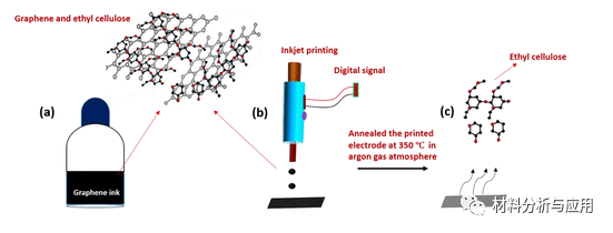 图 1. 石墨烯薄膜电极通过喷墨印刷的制造过程示意图,用作锂离子电池。