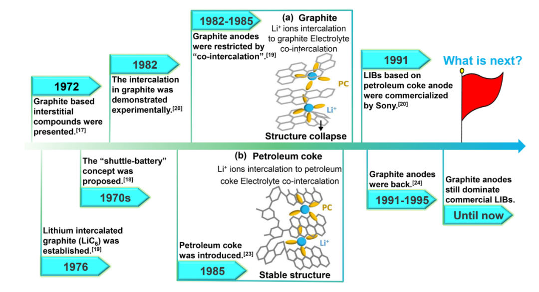 图1 碳材料在锂离子电池诞生和发展过程中的大事记