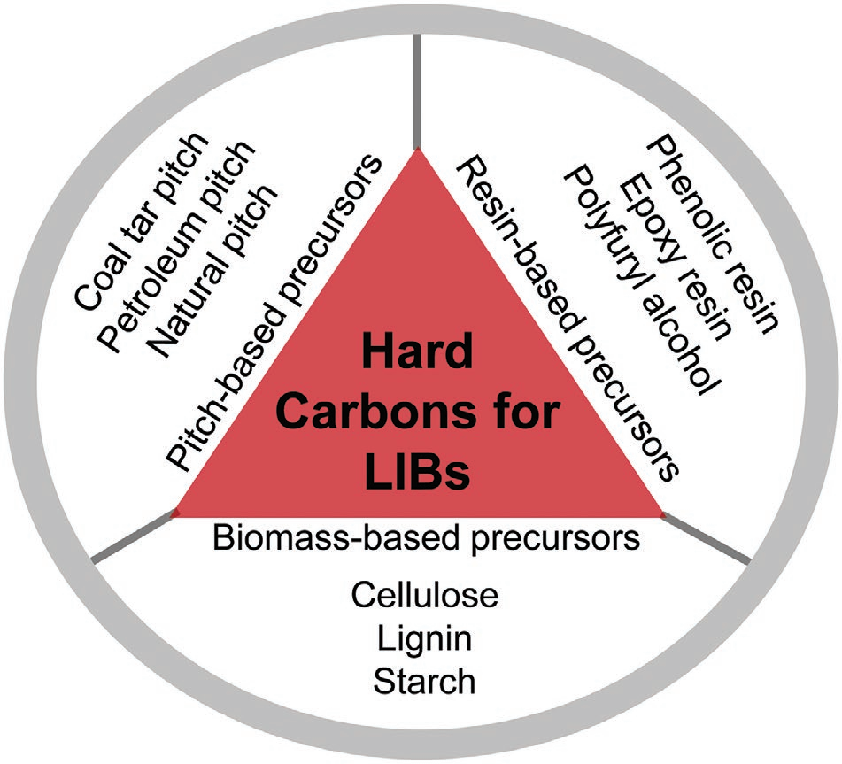 用作锂离子电池负极的硬碳主要采用树脂基、沥青基和生物质基前驱体制备。文中总结了基于以上三种前驱体衍生硬碳的制备方法和优化策略。