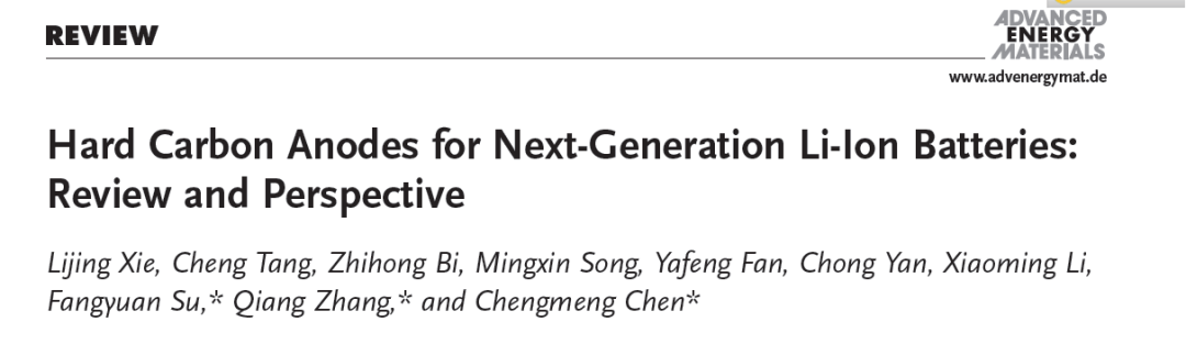 近日,中国科学院山西煤炭化学研究所陈成猛研究员与清华大学张强教授团队合作,系统综述了硬碳负极材料的最新研究进展,重点介绍了硬碳材料的最新概况,包括已报道的硬碳的结构模型、形成过程、储锂机制、材料分类及当前面临的挑战和潜在解决方案。最后,文章对硬碳材料在下一代锂离子电池中的应用进行了展望。