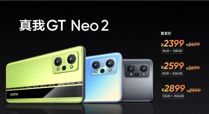 价格方面,realme真我GT Neo2 共推出3个版本,其中8GB+128GB售价2499元,8GB+256GB售价2699元,12GB+256GB售价2999元,以上版本首销限时立减100元。realme真我GT Neo2将于9月27日0时在realme 官网、欢太商城、京东、天猫、苏宁易购等全平台正式开售。