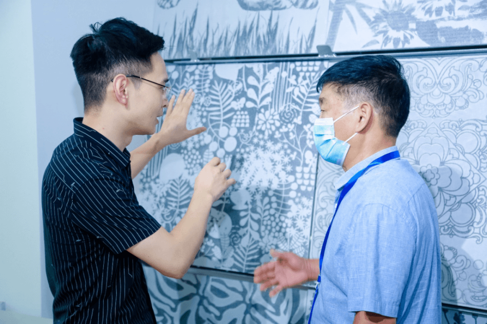 参观地第三站是重庆千美集科技有限公司。讲解人于丰介绍公司开发出了两款特种聚氨酯材料以及光影成像等多项核心技术,我们的材料已经应用在上海的一段河道装饰工程上,使用性能极佳。目前公司已经与上海华锦建设集团和陕西建工集团建立了配套合作关系。我们的产品有着助推装配式建筑发展的潜力,能大幅度提高建筑装饰的安全性和耐久性,满足建筑个性化设计要求,我们做出的仿石材效果混凝土有望替代石材,减少石材开采对环境的破坏。