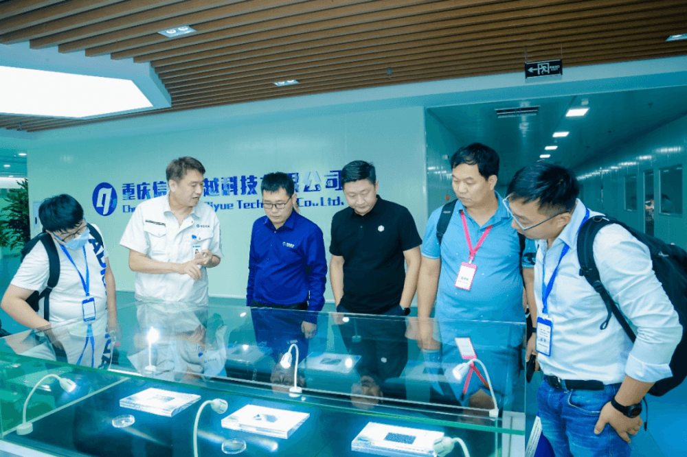 参观地第四站是重庆信合启越科技有限公司。讲解人李葵阳介绍了达到国际领先水平并具有完全自主知识产权的立式石墨烯材料、石墨烯电极核心器件、锌铁液流电池、电催化水处理设备、医用场发射X光设备等创新型产品。详细分享了企业的产品研发、生产、市场推广、自身竞争优势以及未来发展规划等各方面的情况。